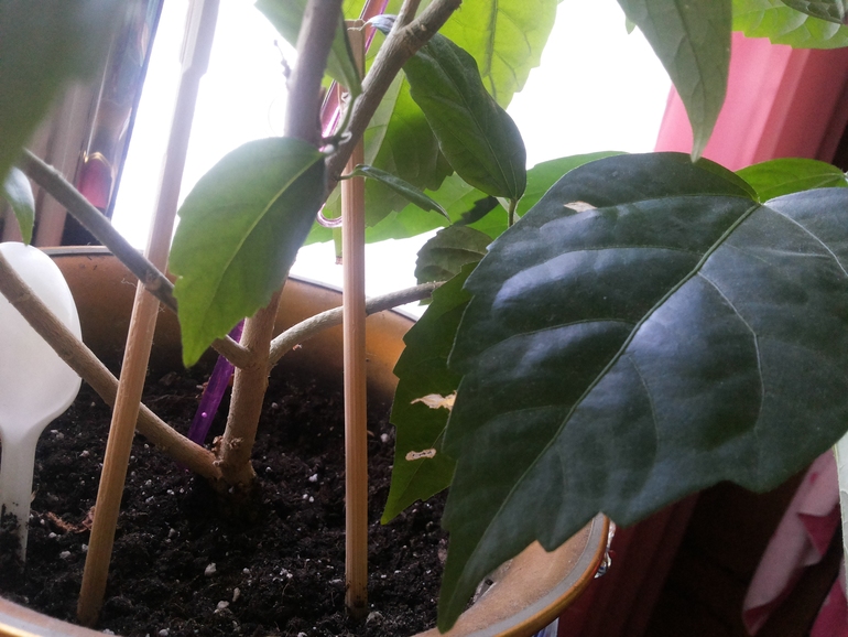 SOS! Помогите цветику!Доброго дня девочки. Я все также борюсь со своим гибискусом. Он у меня уже 3 года и не хочет цвести. С другими пробоем не было.. цвели регулярно и обильнл.. а тут не хочет и все. И вот я заметила на листиках дырочки... сначала сохнет и вот дырки оьразуются. Сс чем это связано и как с этим бороться?