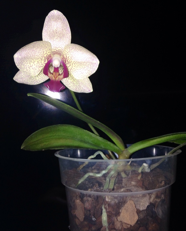 А вот так вчера расцвел мой фаленопсис, его окрас был для меня загадкой, ибо попал он ко мне маленькой деткой почти без корней, за полгода нарастили корешки, листочек и вот, отблагодарил меня пока единственным цветочком