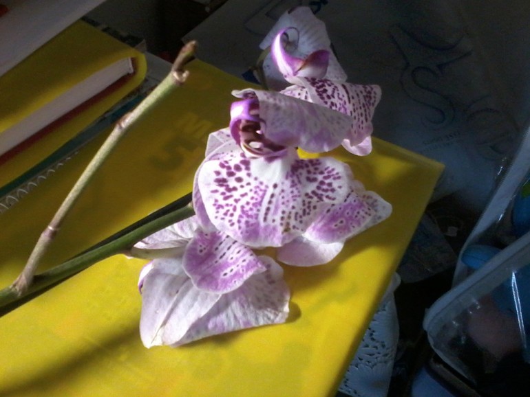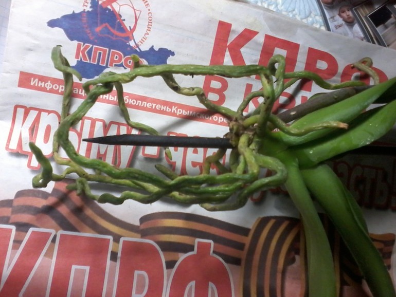 ОрхидеиЗдравствуйте мои дорогие, помогите моей орхидейке. Живет она у меня всего три недельки. В пятницу я ее опрыскала водичкой и уехала, вернулась в воскресенье и увидела что моя орха закинула один лист на соседнюю пару своих листьев и вид у нее был не здоровый, листья стали не упругие. Я ее погрузила в воду, но не какого эффекта. На следующий день я ее достала из горшка, было 1/3 часть сухих корней, гнилых практически не было, обрезала обработанными ножницами и засыпала корицей, положила сохнуть. Сегодня, начитавшись множества информации, сделала печальный вывод: возможно трахиомикоз ( ни одного молодого корешка у нее не нашла). Еще корешки в середине были белые и упругие после корицы быстро высохли, я их тоже удалила затем обработала фундазолом и положила на газету. Помогите ей не умереть, а мне не разочароваться в моей совместимости с орхидеями.