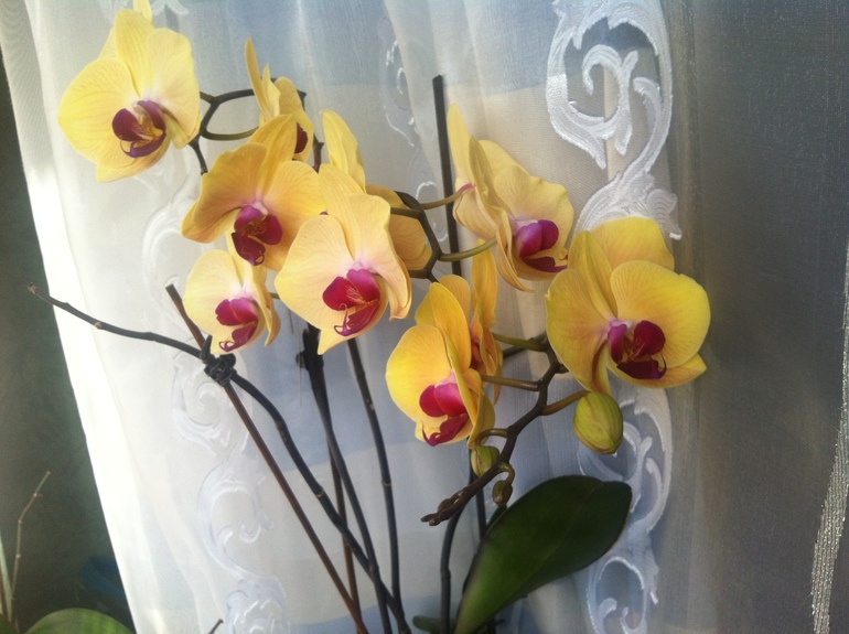 ОрхидеиВ прошлом году после 8 марта распродавала орхидеи, по 70-150р. Они были уже почти без цветов, и их вообще не поливали недель пять наверное.(т.е. листики были слегка пожухшие) Я выбрала 3шт, дама оказалось что в одном горшочке 2шт вместе. Рассадила, теперь у меня 4 орхидеи. Сначала они как то не очень цвели, по 2-3 цветочка и все. А в этом году один из них меня очень порадовал. Такое количество цветов впервые, и я так радуюсь, хожу вокруг него, любуюсь. Знаю, что у других бывает намного больше, но для меня и это счастье ) Вот она, моя прелесть )