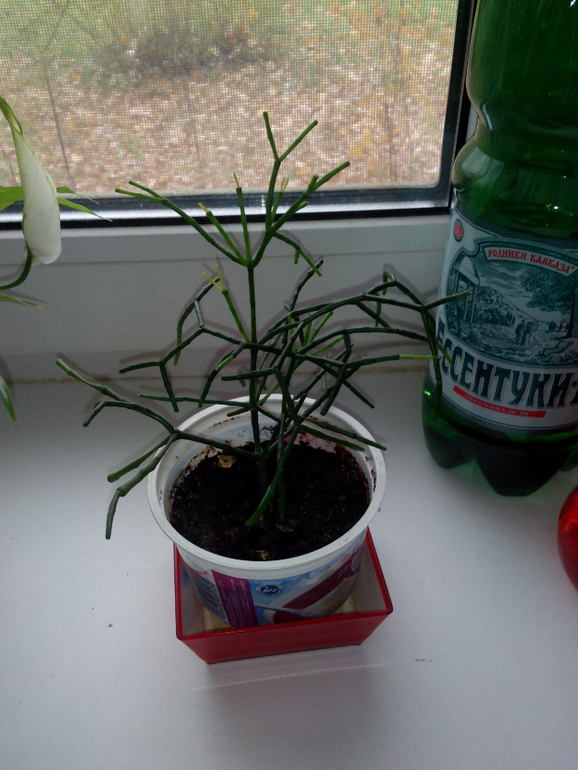 И вот. Этот у мамы, помнится, рос. И очень красиво и вкусно цвел белым цветочком, пахнущим на всю квартиру (во всяком случае, внешне очень похож). Принесли его совсем завядшим. Сейчас пара листочков вроде встали.