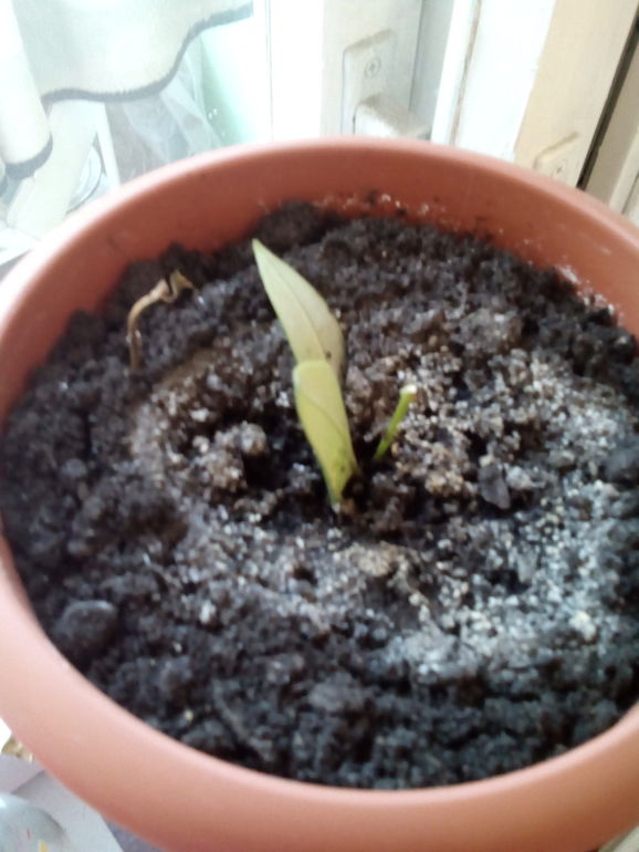 1. один из отростков принесенных с работы сдох, почти сразу, хотя в укоренении его я меньше всего сомневалась Сингониум сдох... а принести новый все как то руки не доходят.