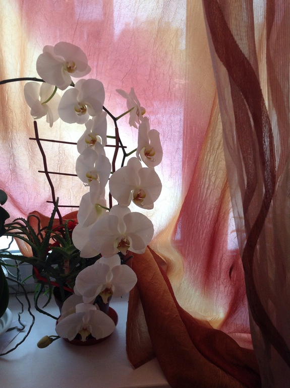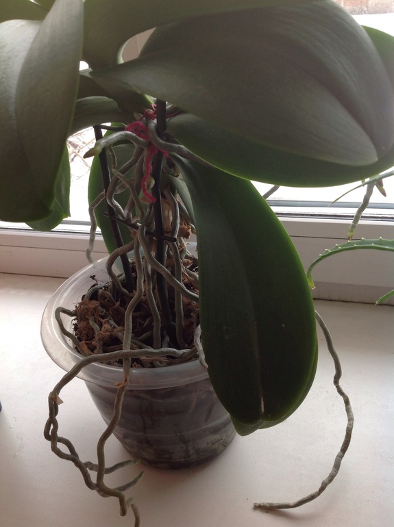Воздушные корни нельзя обрезать! Мне ваша орхидея очень нравится!) Виктория, а как вы ее поливаете? И еще вопросик, я смотрю она привязана к опоре над горшком?Изначально она сидела в горшке и это у нее так ствол вырос, а листья внизу отвалились?
