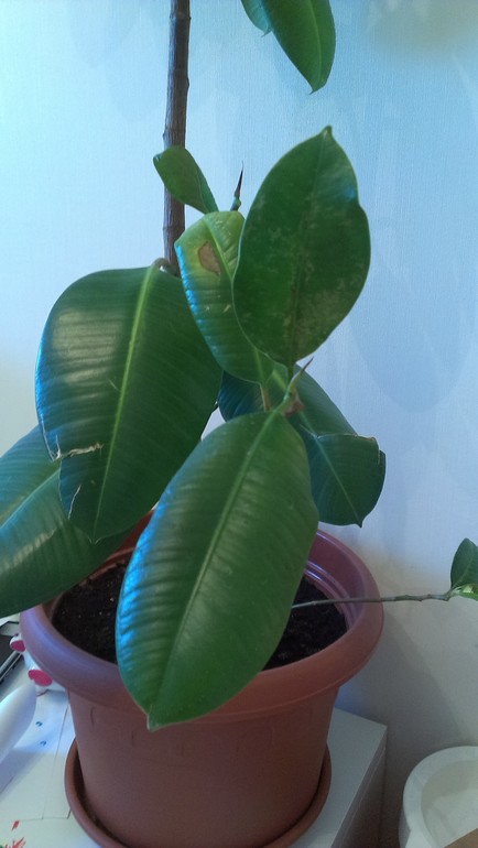 SOS! Помогите цветику!У моего фикуса желтеют и опадают листья, также на них с обратной стороны появились какие-то черные точки. Видимо, личинки от каких-то насекомых... Что это и как с этим бороться? Очень нужна ваша помощь...