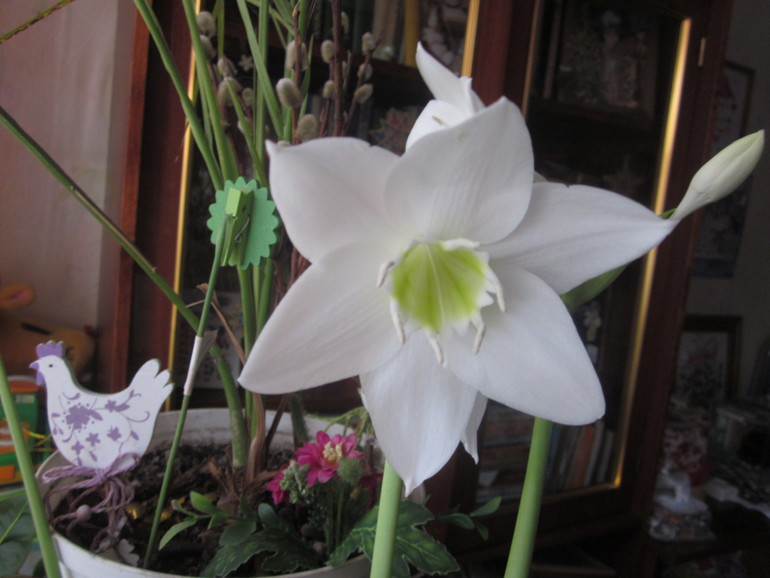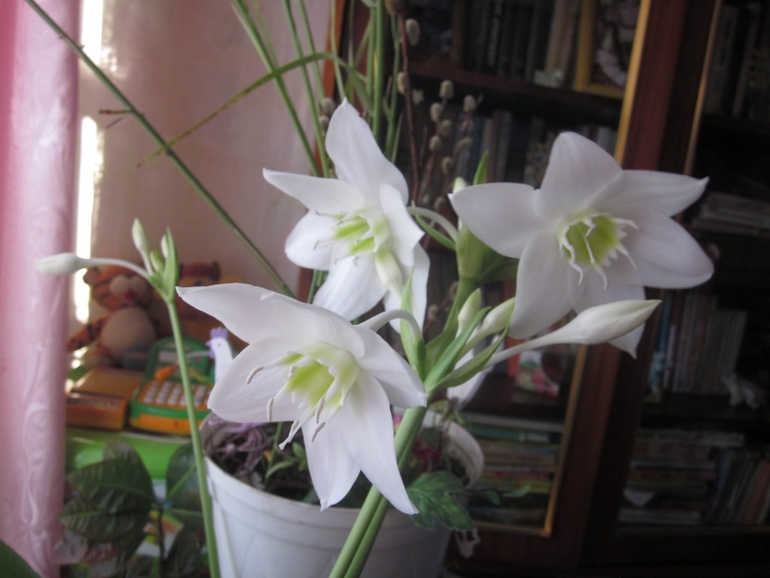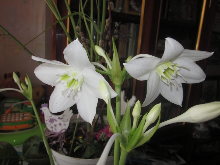 Да, первый это гибискус! Он неприхотлив в уходе. Цветет сутки. Второй — это Эухарис. Луковичное
