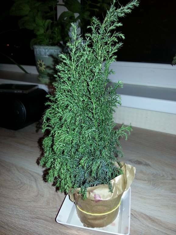 типа пихточки.правильное название не подскажу. мне такое дарили и моим знакомым. "Новогодняя атрибутика"-я так это называю. Он засох через нескоько недель после нг. А мой знакомый вообще цветовод-толк в этом знает-лилеял и правильно ухаживал. У него также месяц только отстоял.