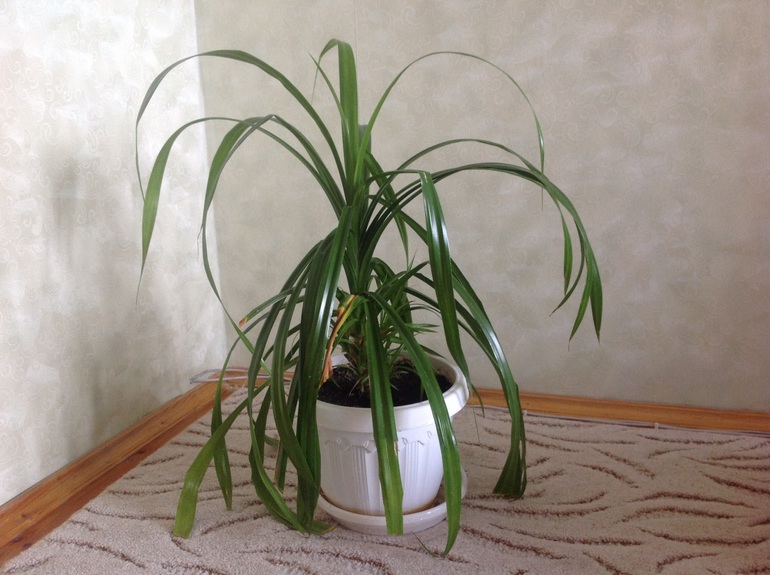 Тогда точно панданус.))) Это он такой злодей-недотрога))) Вот от чего листики желтеют, не подскажу((( У меня было 3 таких растения, правда маленькие и 2 из них сгнили от того, что я их обильно опрыскивала( вода оседала между листиками) Я его теперь не опрыскиваю почти и поливаю мало. Не далеко от этого цветка поставила плошку с водой. чтобы испарялась.