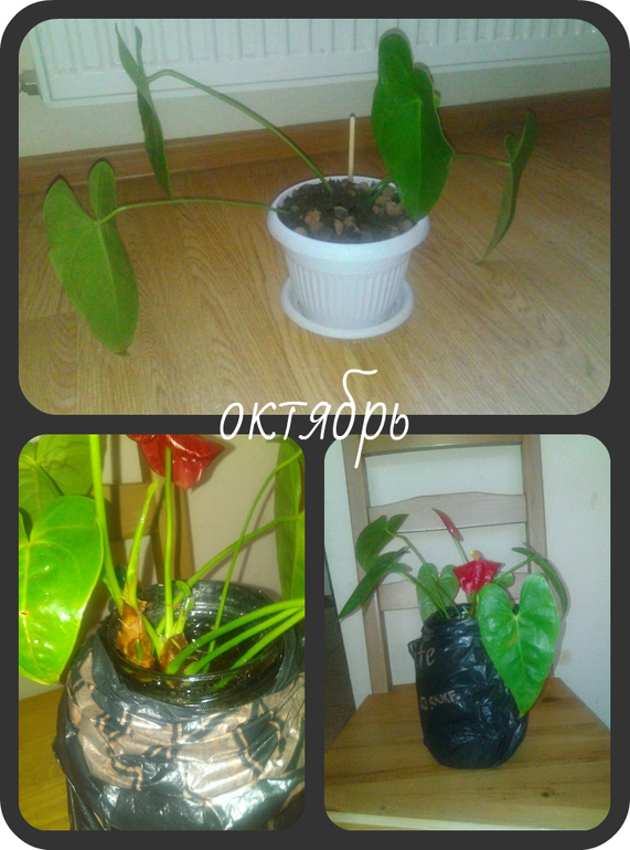 Спасибо)))У антуриума это сухие пятна — на этом стволе всего 3 листа осталось, не хочу голым оставлять... А так он весь зелененький) не заливаю — скорее наоборот недоливаюУ спатифилума корень длинный и не сгибается — я если в меньший горшок посажу то мне его не закопать будет(( не обрезать же корень