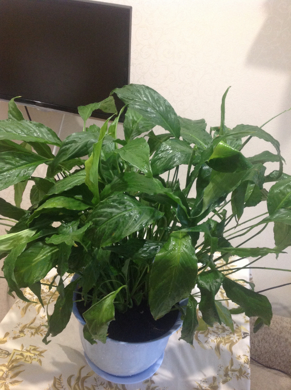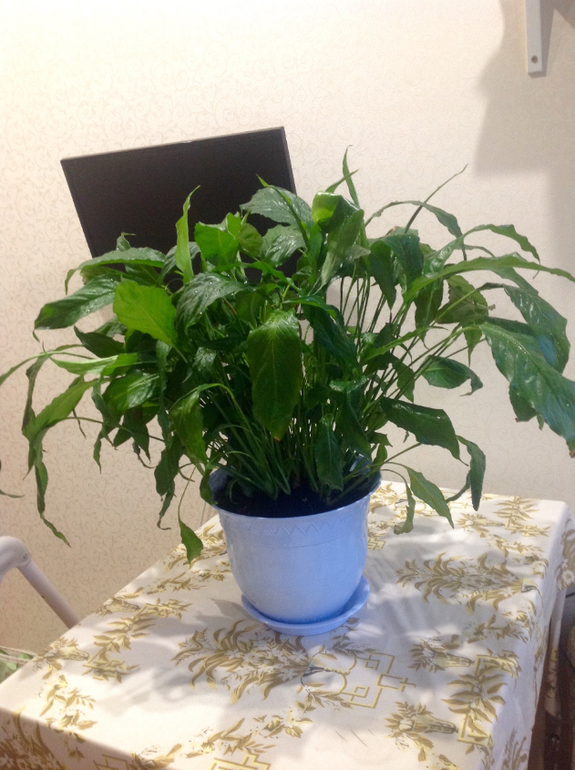 Спатифиллум. Взрослое растение - 4 года ему. Высота от дна горшка 65 см. Диаметр 80 см. Очень красивый и пышный! Состоит из множества кустиков. Стабильно цветет и радует своими цветами! Цена 1300 рублей.