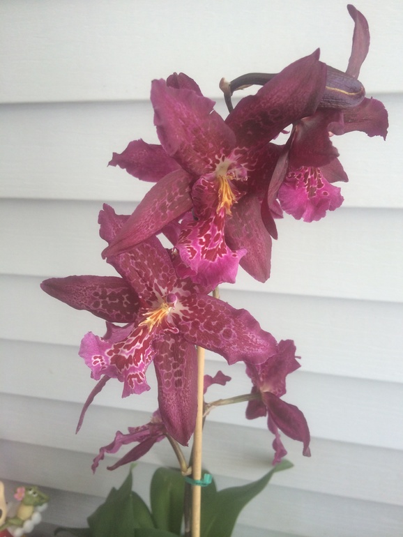 Это беаллара, семйство камбриевых:)запах у них абалдеть можно) в принципе уход такой же как и за фаленопсисами, единственное что это ни в конм случае не поливать поверх ботвы и никаких душев, ибо вымакать воду не реально а загноиться на ура. И после цветения надо пару недель посушить. Это симподиальная орхидея, тоесть не как фалик с одной точкой роста. Цветет с новых бульб, когда они созревают. Цвет держиться гдето месяца два-три в зависимости от температуры, чем ниже тем дольше, но температура не должны быть ниже 13. Удобряется как и фалики через полив, Цветет гдето два раза в год при правильном уходе, может больше если куст приличный. Но у них нет такой особенности как у фаликов, продолжать цветение на старом цветоносе, если цветонос отцвел смело резать, с него цвести уже не будет.