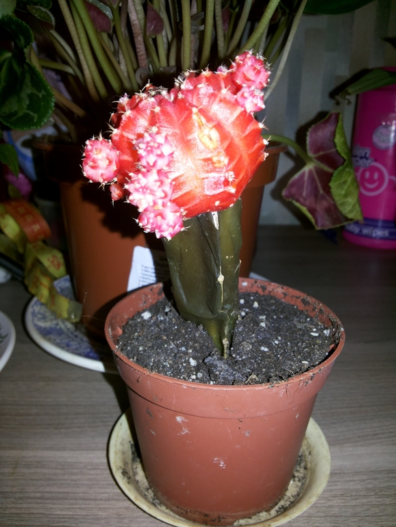 это прививка сверху. она не будет жить сама по себе. только если на другой зеленый кактус привить.