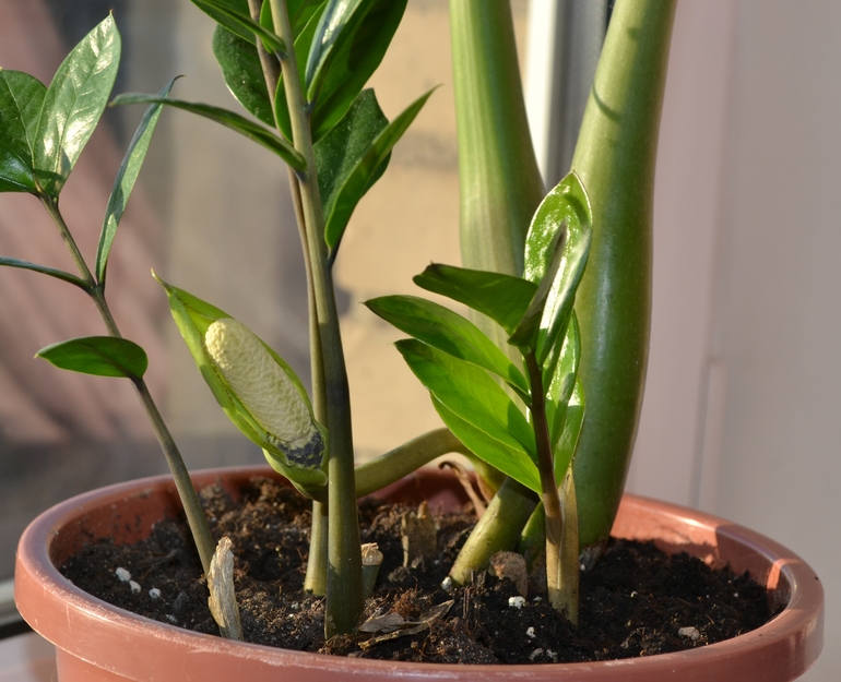 здорово,у меня уже достаточно большой замик,года два ему,отщипнула от маминого,растет и в ширь и ввысь,но вот ни разу не цвел...у мамы тоже два замика,одному уже лет пять(от которого я отщипнула),другой из отвалившегося стебля,тоже года три,но тоже ни разу не видела чтобы цвел...может у нас сорт такой?мужики?
