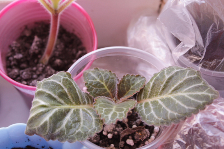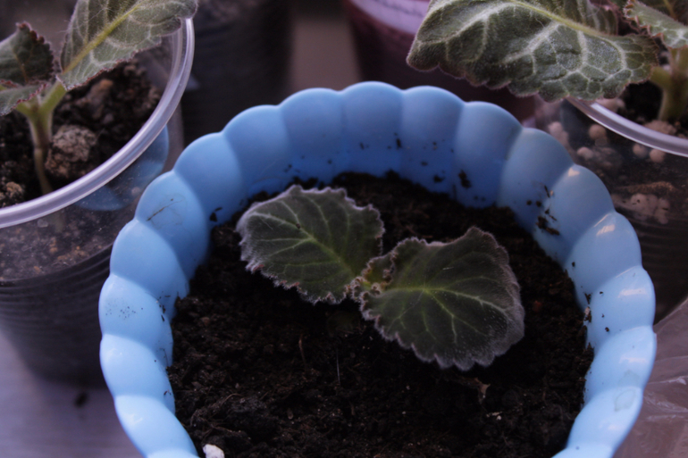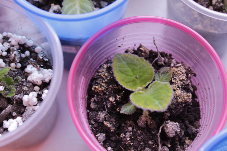 Фиалки/ГлоксинииМожет кто-то помнит, что я сажала много разных листочков глоксиний осенью. Всю осень и зиму была тишина...стояли они у меня на восточном окне в "тепличках" и не подавали никаких признаков. Поливала за зиму раза 3 наверное только...