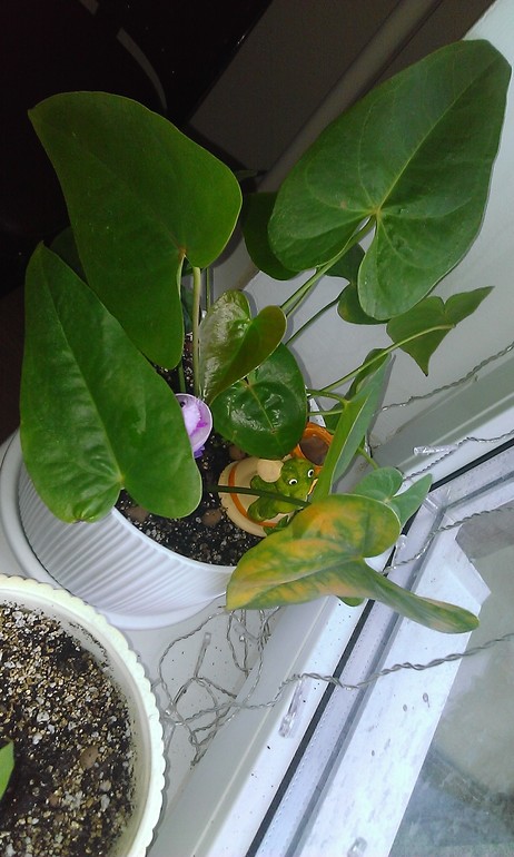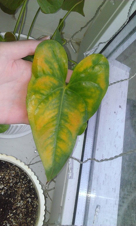И у меня такая же ситуация, я купила его пару недель назад, не пересаживала, опрыскиваю ежедневно. И тут нижний листик так же пожелтел... Остальные хорошие.