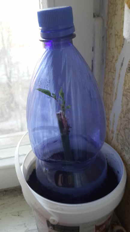 Далее я на сутки поставила черенки в гумат+7, разведенном в воде. Одну часть роз посадила в универсальный грунт под бутылку, другие оставила просто в воде.