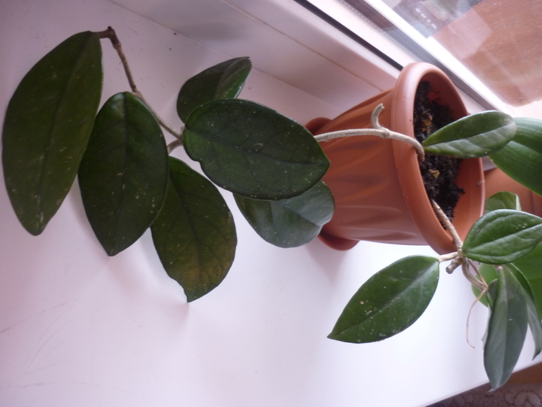 Хойя карноза или мясистая:), или медовое дерево:)Сама неприхотливая из хой:)Листочки не трите, можно купать под душем:), любит "легкую" почву (рыхлость можно за счет смешивания в перлитом получить), солнце, если южные окна или юго запад, то в активное солнце притенять :), любит перепады температуры (ночью похолоднее), когда зацветет, то грозди будут давать приятный сильный запах меда, причем самый сильный запах услышите на рассвете:), а ну и еще если супер пупер подоконник, который нельзя мыть:), то при цветении застилайте его чем то, т.к. цветы выделяют очень много нектара:) После цветения цветоносы не удаляйте, т.к. один и тот же цвете несколько раз