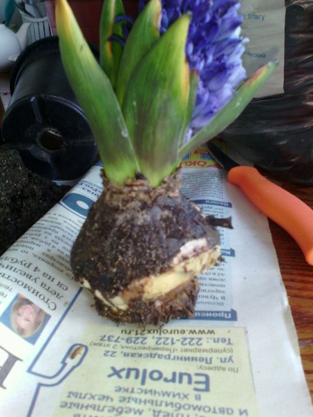 SOS! Помогите цветику!Девочки,ездили мы тут на днях в цветочный, за горшками..пока ходила выбирала,муж втихаря купил гиацинт,какой-то прям мини гиацинт))меня порадовать,дней 5-6 он как дома,вот вчера заметила начали желтеть кончики листьев,решила пересадить,вытащила,а там луковичка начала подгнивать и корней нет,старые неживые только немного торчат..как мне его спасти теперь?посадить все же в новый грунт или подсушить немного на воздухе или над водой посадить?