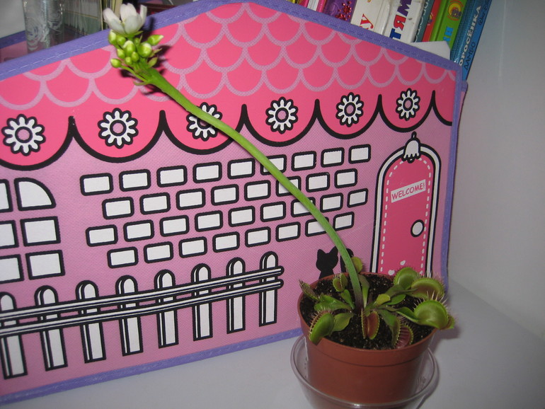 ХвастушкиРешила в этом году провести эксперимент с цветением мухоловки и оставила цветоносы на двух растениях. Результат на фото. В принципе ничего особенного, цветонос рос месяц, сегодня синхронно оба растения открыли по цветочку.