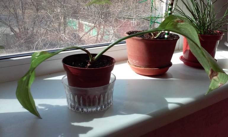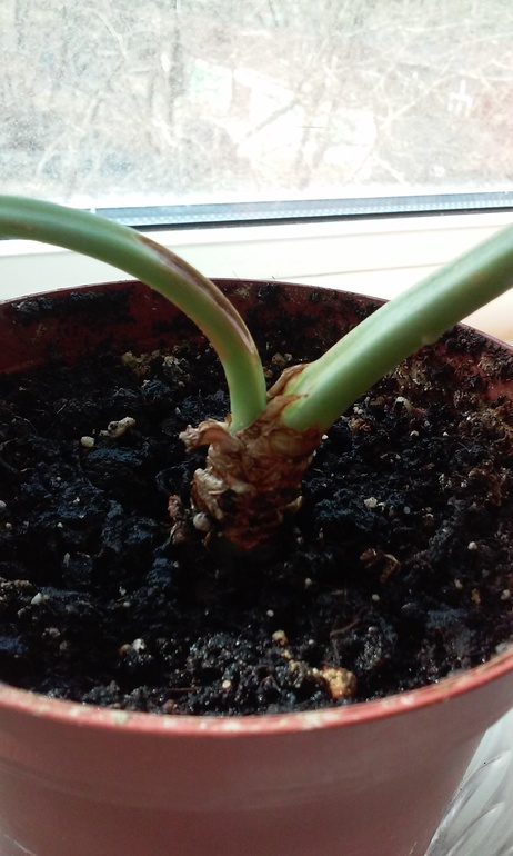 Помогите опознатьДевочки, на работе в темной комнате нашли две луковички в горшках, но не знаем, что это за цветы? И, главное, как за ними ухаживать? Уже давно сидят, а новых листьев нет больше