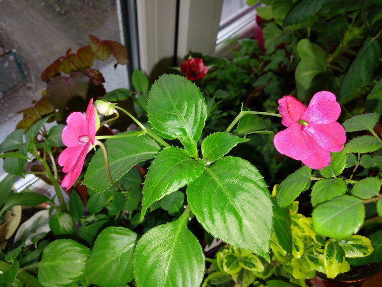 Это бальзамин, который трижды с успехом прошел испытания клещом, жарой и прочими кошмариками! Тоже писала про него, и благодаря Вашей совместной помощи - вылечила его! За что оооочень благодарна и отчитываюсь фотографиями! Он жив)