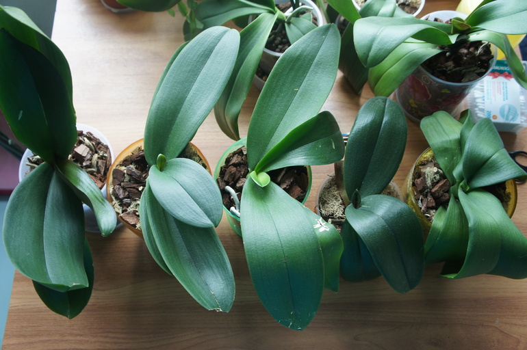 Бог мой сколько орхидей. Обычно после выпускания листиков,идет рост цветоноса.Я их никогда не поворачиваю,сами любят к свету тянуться. И вообще они любят постоянство,одно место и строну)))