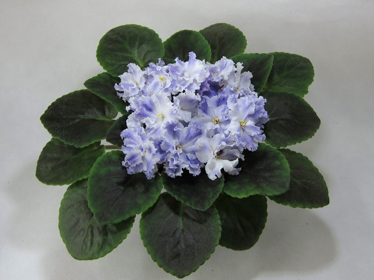 ЛАМБАДА, Крупные полумахровые волнистые розово-лиловые звёзды с полосами и штрихами синего фэнтези, с белым центром и широкой белой каймой.