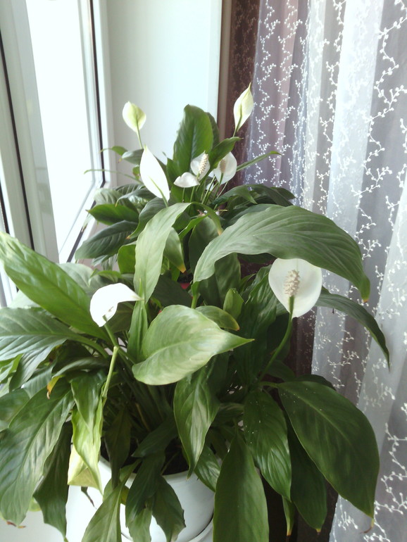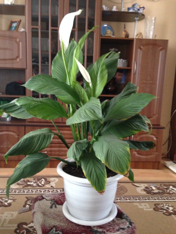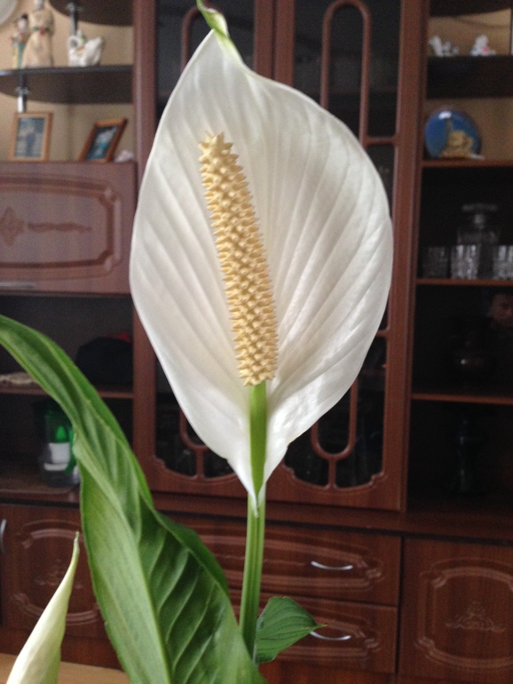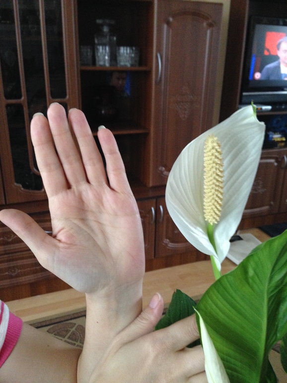 ХвастушкиВот такой необычный цветочек "выдал" спаптифиллум, сначала думала, что это один лист разорвался, а в итоге- это 2 на одном цветоносе!! Такое в первый раз!!