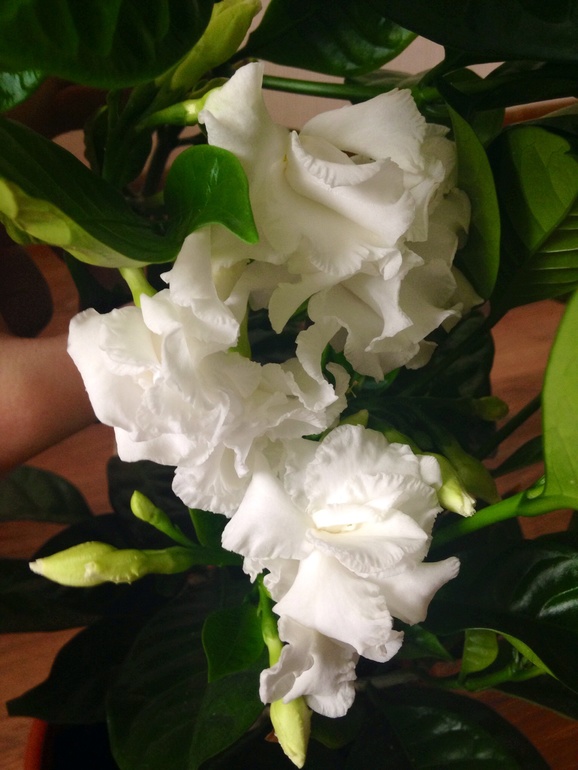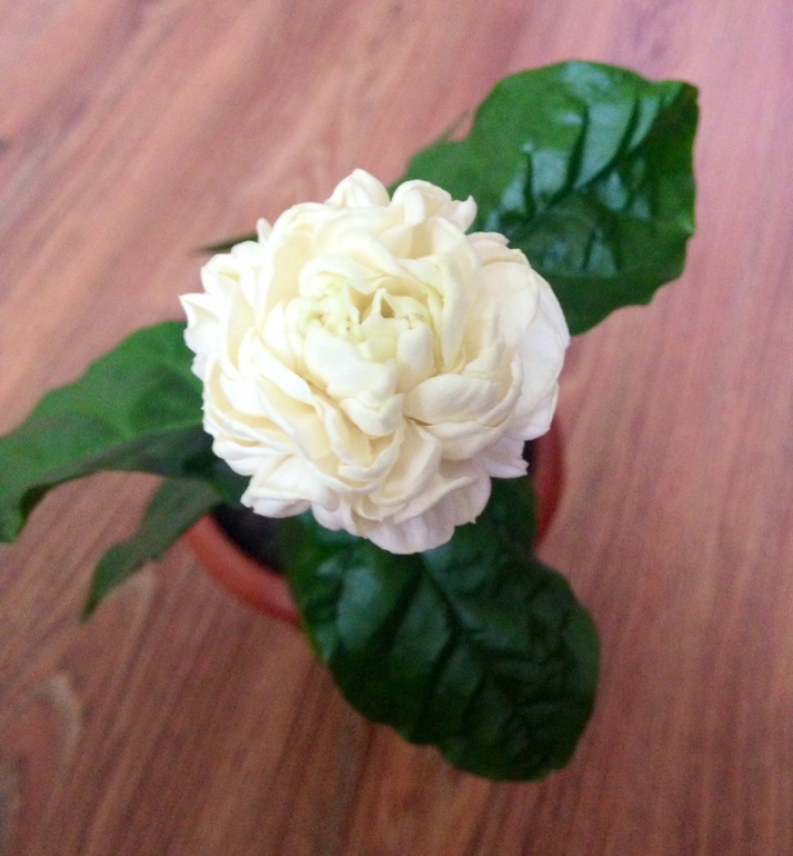 Жасмин Гранд Дюк, как всегда шикарен, но, в отличие от зимнего цветения, цветок в разы больше и объемнее, а запах даже от одного цветка заполонил большой зал