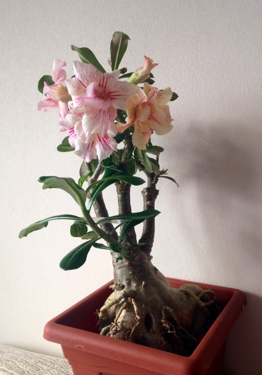 В первый раз зацвел адениум ароматный Fragrant Yellow, да так разошелся, что цветет букетом, на меньшее не согласен