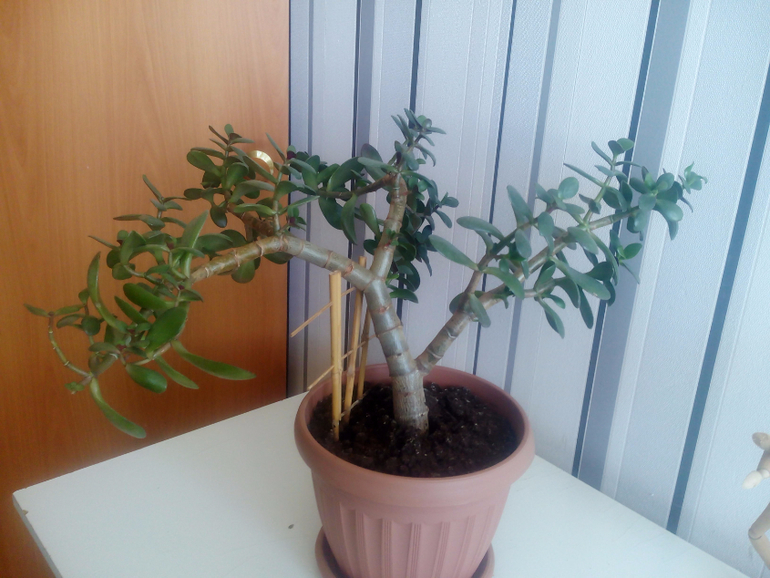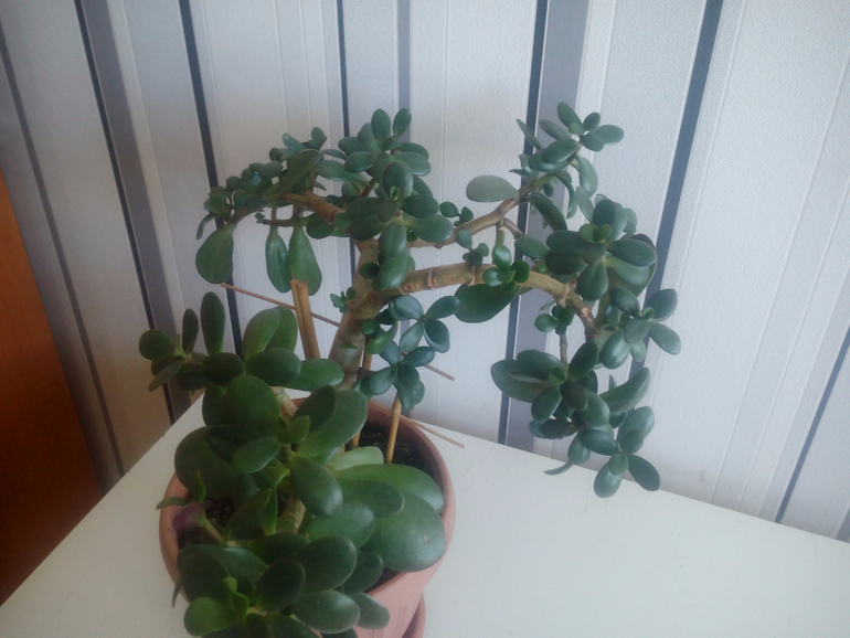 3) Толстянка...что то ее сильно клонит...размышляю в сторону либо поотрезать и сделать из нее 3 самостоятельных растения или отрезать краюшки и пусть дальше растет...