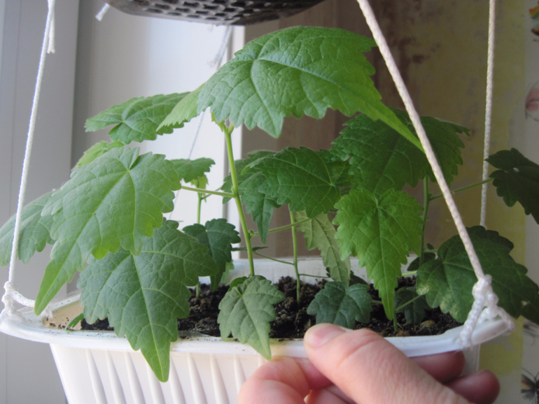 Вот так выглядит мое окно. Места очень мало в квартире, поэтому муж мне приделал штыри и все у нас в висячем состоянии.