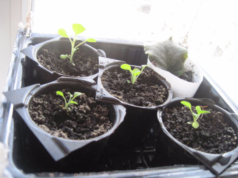 А это мои абутилончики. Сеяла смесь расцветок, хочу посадить в один горшок сразу расцветки 3, но только пока не зацветут не узнаю. А уже можно и в горшки сажать.