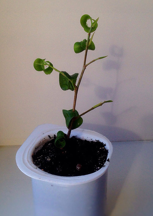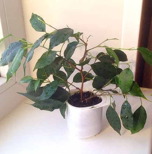 Когда она у меня стояла на кухне на столе, свет включался только верхний. Она искривилась некрасиво, но разрослась хорошо, тогда же и зацвела. Два раза цвела там. Потом я решила прибрать ей прическу, отрезала кустики от ствола, укоренила и снова посадила в этот же горшок всех вместе, к тому же переставила. Сейчас стоит в полутьме, поливаю удобрением, разрастается хорошо, но увы, не цветет больше