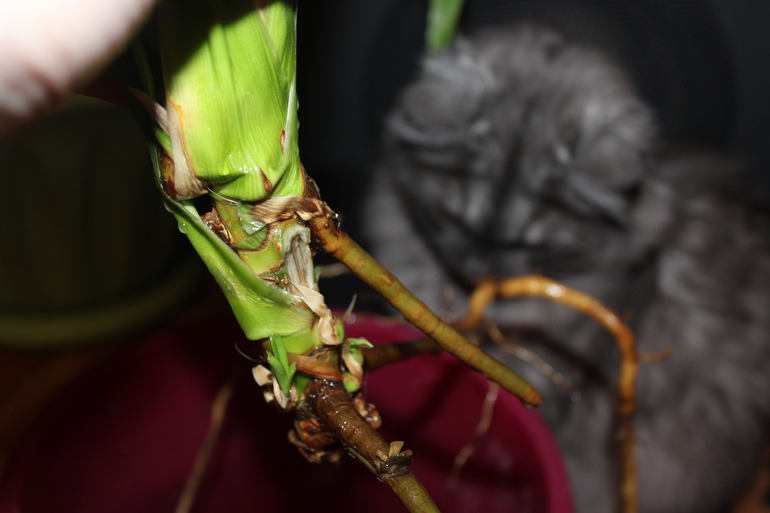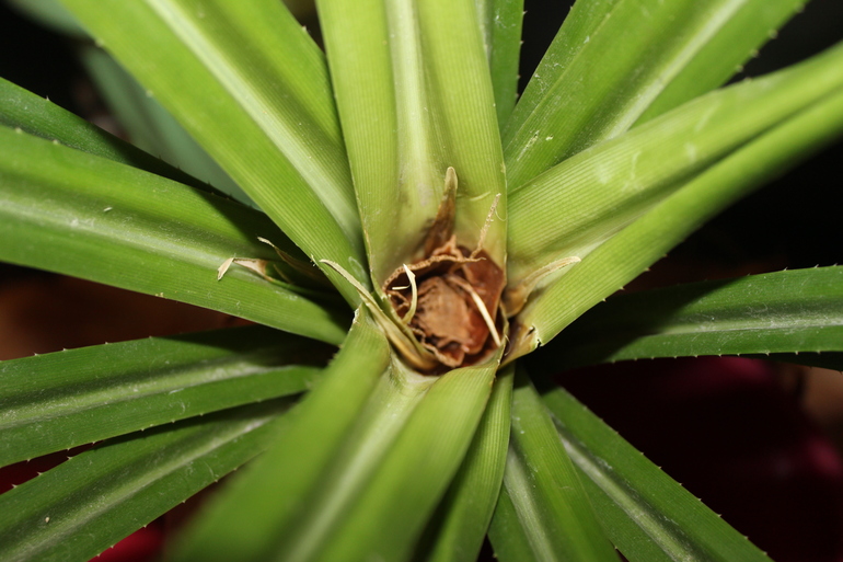 SOS! Помогите цветику!Вчера нашла на помойке чудо-цветок) я таких не знаю,и не видела, стало жалко,т.к. с виду листья и корни живые и целые. Принесла домой, и в ведро с водой. сегодня утром рассмотрела, что листья внутри розетки все коричневые, и как бы отгнивают, я их вырезала, но внутри стебель все равно коричневый. Осмотрела и увидела с боку маааааленькую детку и почку. похожую на детку будущую. Вот и вопрос созрел, что делать? Обрезать до деток? Или из этого ствола что-то выйдет?) Или его вообще не спасти? Цветок похож на панданус, (яндекс мучила сегодня). Ну и фото