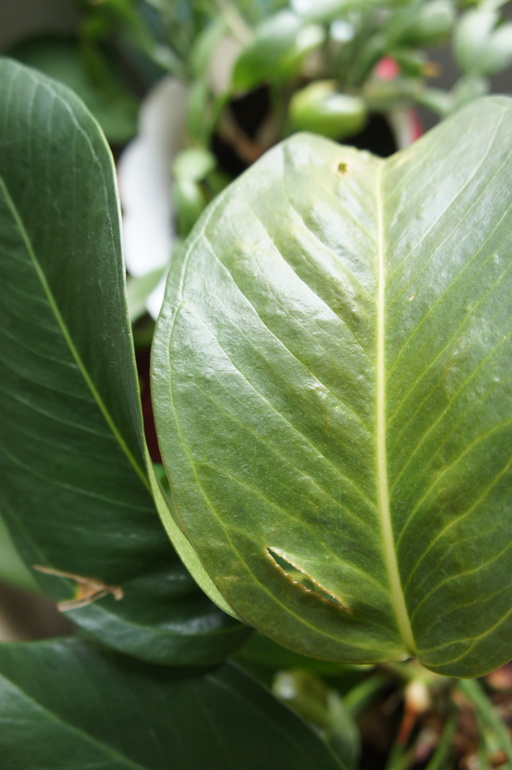 Другие растенияДевочки подскажите, пожалуйста, почему на молодых листьях появляются дырки, не опасно ли для окружающих его цветов, фото