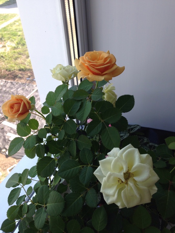 Дело в том, что розы у неё все садовые — для открытого грунта, вам, как я поняла, нужны комнатные? И то покупала она их у цыган, по дешёвке у перехода, так что названия сортов вряд ли достоверны, если они вообще есть. У меня тоже одна комнатная роза есть, я ее тоже купила с рук, так что сорт не знаю. Лучше в магазине поспрашивайте, там ведь всякие бывают сорта.