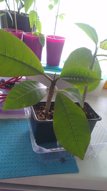 растут плюмерии(очень нравятся мне их прожилки на листиках)