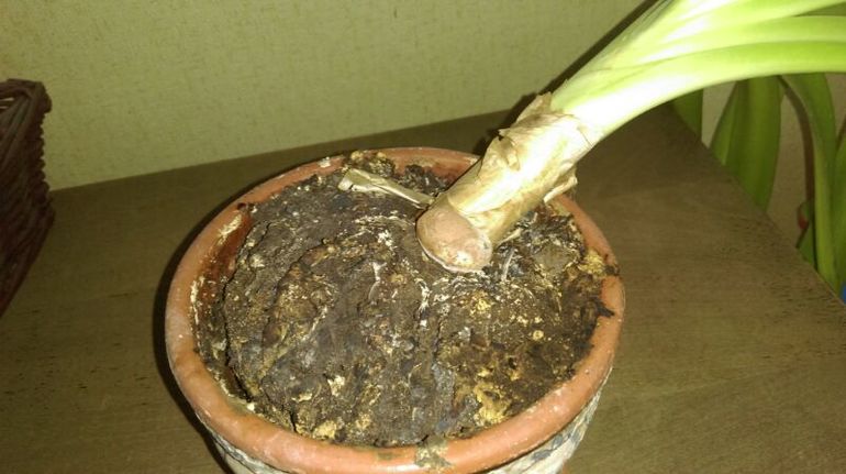 Надо смотреть сколько корней. Если просторный горшок он цвести не будет. Просто поменять землю и поставить цветок прямо. В этот же горшок.даже можно поменьше горшок.....и луковица чтоб на половину торчала из земли.