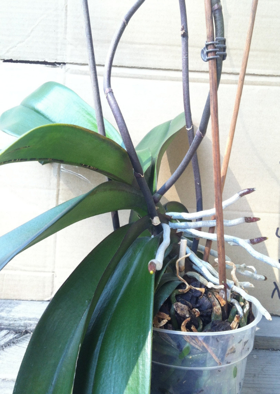 ОрхидеиУ моих орхидей как то уж очень высоко начали расти корни. Думаю что пора их пересадить, но не знаю как это сделать. Ведь корешки довольно хрупкие, согнуть их чтоб они влезли в горшок не получится, они сломаются, да и нижние листья будут мешать. А у второй орхидеи вообще корни прям между листьями выросли. В общем не знаю как быть. Помогите советом!!!