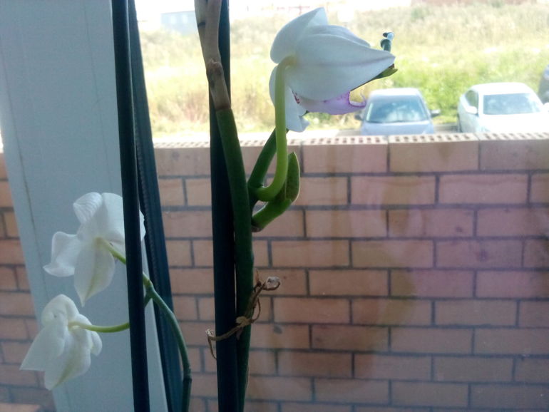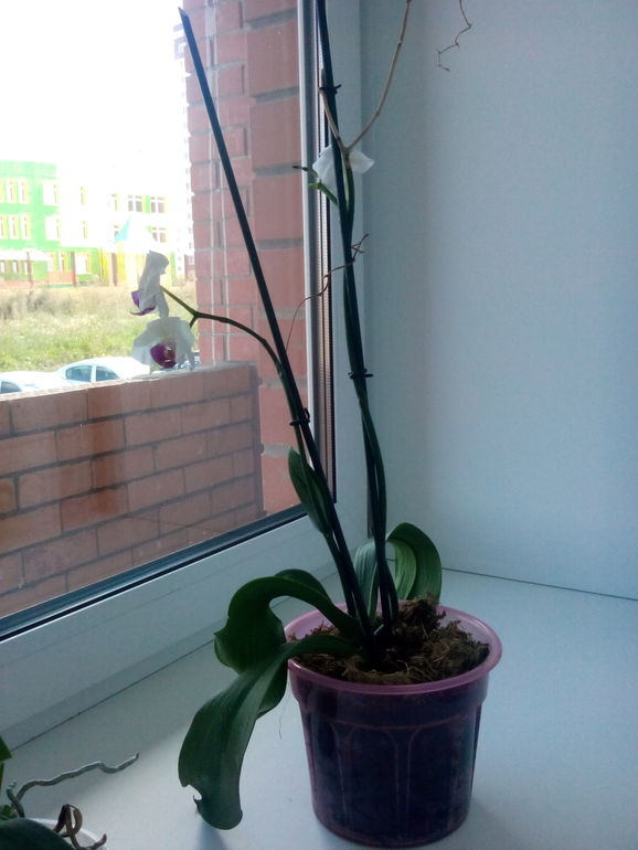 орхидею обязательно !!!!!!!!!!!!!! пересадить в кору . в горшку сделать ОООООООЧЕНЬ много отверстий, корни ( сухие , гнилые ) обрезать( я никогда корни ни чем не присыпаю и не мажу ) и скинуть фото с корнями что остались ( потом посадить в кору). Можно использовать удобрение в палочках. Цветоносы обрезать до зеленого. И запомните орхидеи НЕ РАСТУТ В ЗЕМЛЕ ( я имею ввиду фалинопсисы) ОНИ ЭПИФИТЫ им нужно жить на дереве и не НЕ ПРЯМОМ СОЛНЦЕ .