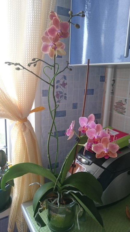 Поливаю как обычные цветы. Она практически в воде стоит. Я знаю, что так нельзя,надо погружным методом. Но у меня почему-то так 3 орхи умерли (( Пришла я как-то в гости к тёте, а у неё они все в воде, и цветут и красивущие. Теперь и я так поливать стала. Вот этой 3 года, пока ещё цветёт довольно часто.