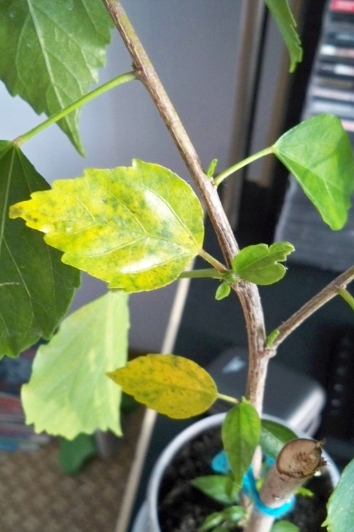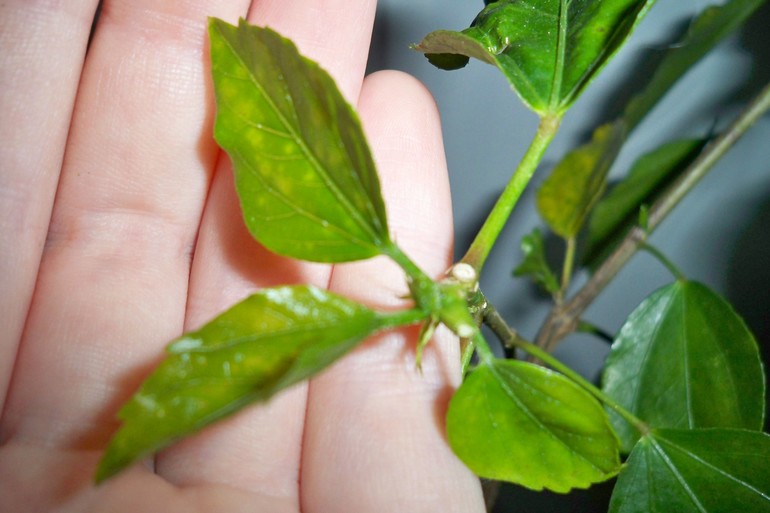 SOS! Помогите цветику!Что с моим Гибискусом? Девочки купила месяц назад с рук Гибискус. Девочка у которой покупала сказала что растение обрабатывала мыльным раствором так как растений много и атаковал паутинный клещ. Паразитов нет, всё растение осмотрела. Но что с листьями?