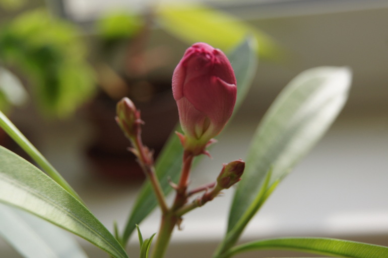Другие растенияНаконец, порадовал цветением олеандр. Долго я с ними возилась. То пыталась формировать, то ждала и не обрезала, а они сильно вытягивались в росте (не смотря на небольшой горшок и солнечный балкон). И вот весной я обрезала макушки, укоренила и посадила.. Одна из макушек в конце июня дала бутончики, дооолго они распускались, а вчера, наконец, раз - и распустился)) Как я рад)))