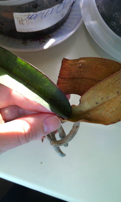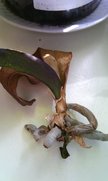у меня так было все сухое и гнилое обрезала, поставила в водичку на полчасика, потом посадила и через день поливала сверху на корень, тк корешки маленькие и он не доставал воду со дна. прошло 2 мес он пустил стрелку(зацветает) и укоренился