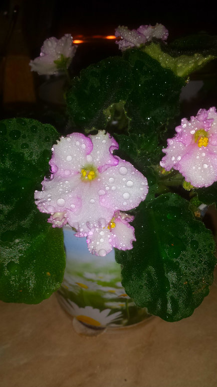 За окном не погода, а на подоконнике распустилось такое вот чудо красивое)фиалочка, нежная, нежная(название не помню)..С удовольствием с кем нибудь поменяюсь отросточками..
