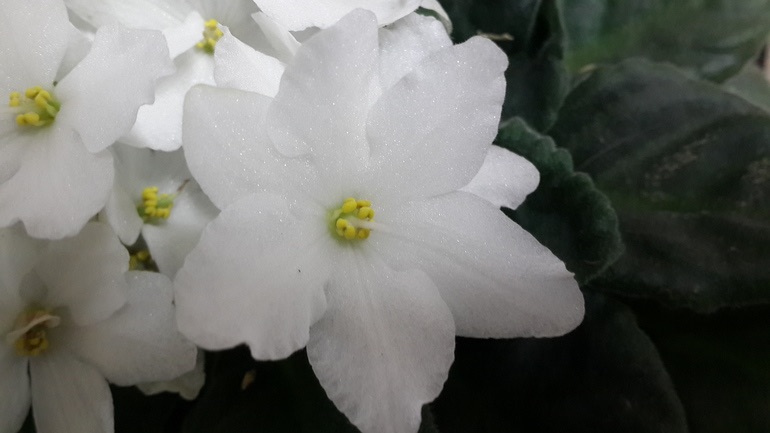 Фото не передает, но цветы как бы перламутровые или блестящие, не знаю как описать. Где крупно цветок сфотографировала немного видно, если фото увеличить