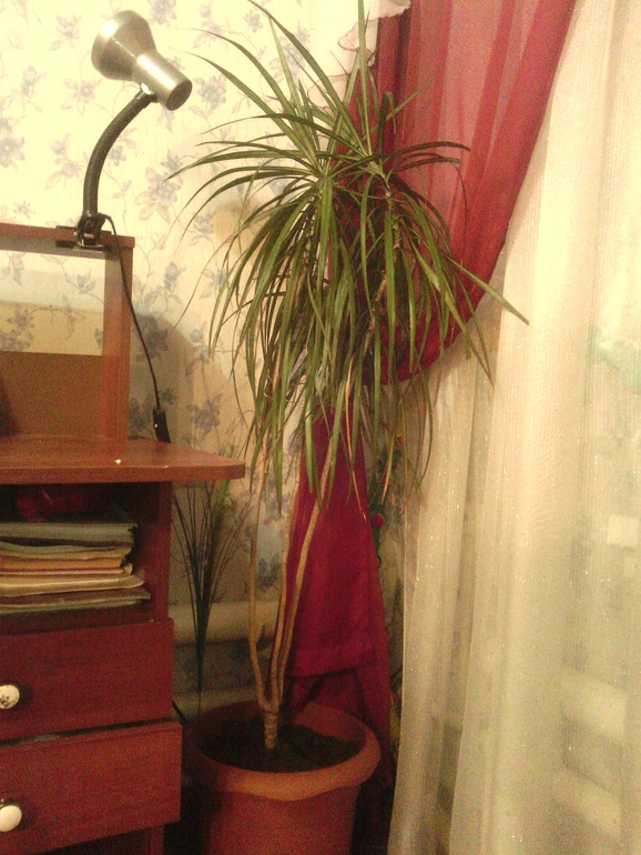 6) Еще одна драцена, отогнутая вроде, малышка, недавно подаренная, тоже мамой. Я теперь ей говорю, чтоб на след ДР подставку дарила))) а то ставить уже некуда