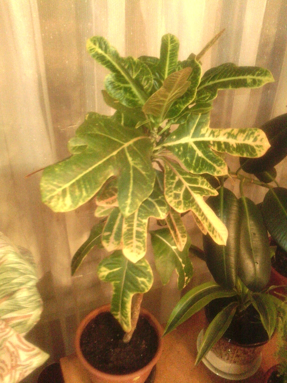 5) Кротон, снизу облысел, стал пальмой, сказалось его трудное прошлое