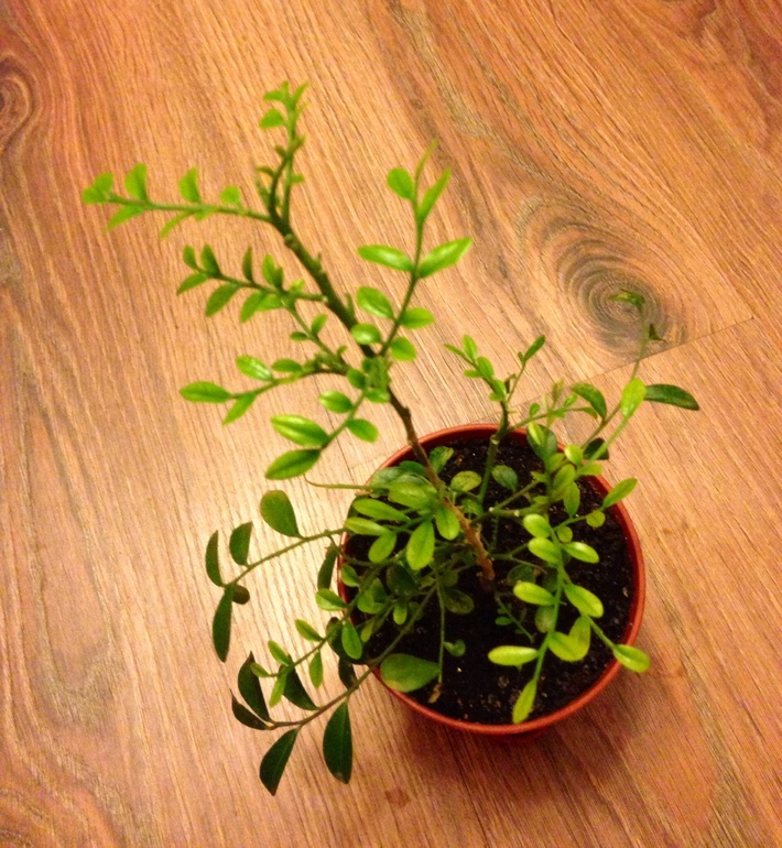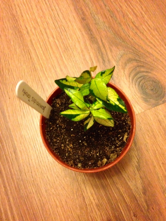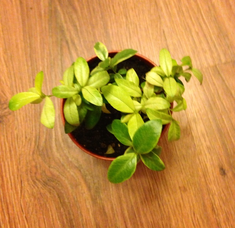 Табернемонтана карликовая вариегатная, приехала ко мне из Тая абсолютно лысой, начала обрастать потихоньку: