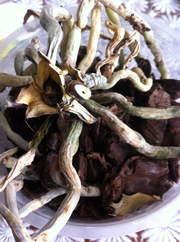 В 99% случаев такие проблемы имеют любители душа и побрызгать сверху. Потому как промокнуть пазухи на чисто практически не реально, а призастойном воздухе и плохой вентиляции это практически 100% риск гибели растения. Пользу душа, а тем более горячего сильно преувеличивают будучи уверенными в типа природных условиях. Миннимум душ не принесет ничего хорошего, максимум останется вот такой вот обрубок фаленопсиса. Во-первых тот кто хоть раз был в тропиках знает что дождь нифига не горячий там, а очень даже прохладный, но при этом влажность действительно не низкая, но прямого контакта с водой нет. Во вторых дождь в тропиках идет считанные минуты а то и секунды, при этом воздух полностью продуваем в итоге не задерживается вода в пазухах. Ну и самый важный критерий это то, что в природе фаленопсисы растут вниз головой и вода свободно вытекает из тех мест там где она не нужна. И наконец то чисто логический критерий- воду фаленопсисы "пьют" нижней стороной листа, именно на ней расположены устицы, а не сверху, поэтому то что льют воду поверх растения, ему фиолетово абсолютно. Так зачем мучать себяи растения?)) не, я конечно сама бывает паз в год поливаювсе свои растения сверху дабы смыть пыль с них, но делаю это на улице и максимально стараюсьчтобвода стекла, держу растение вниз головой минуту, придерживая субстрат, а потом оставляю на улице хорошо просохнуть. А по поводу вопроса на счет помойки- рано, выкинуть всегда успеете, а вот вероятность что оно даст детку очень велико:)